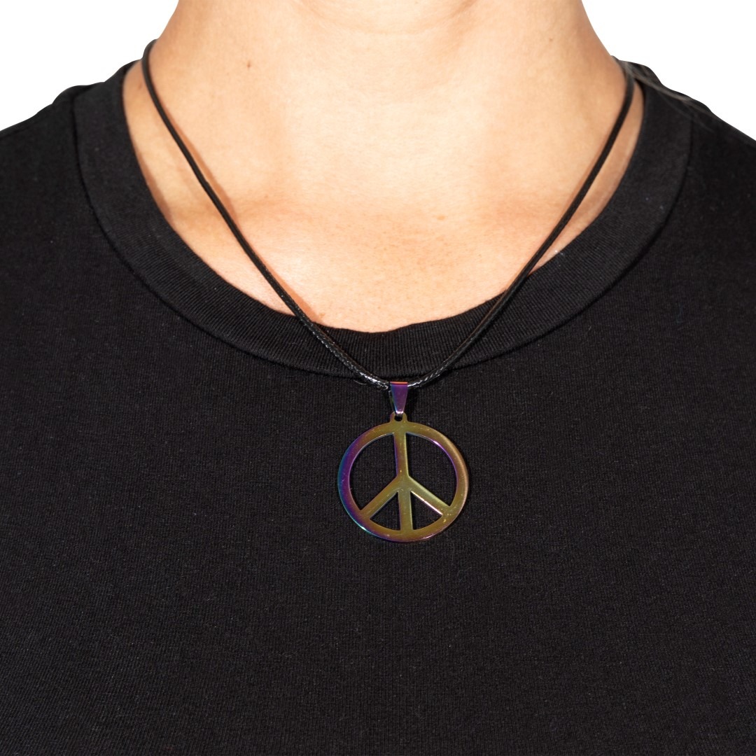 Hippie Peace ketting, hollogram paars. (Te bestellen per 12 stuks)