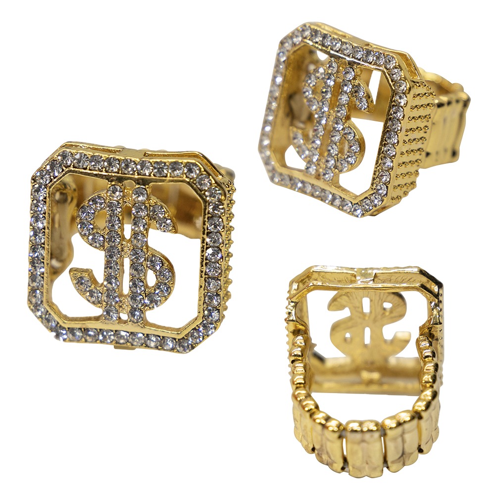Home / Accessoires / Sieraden / Luxe Dollar ring met strass stenen, goud
