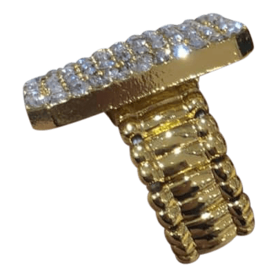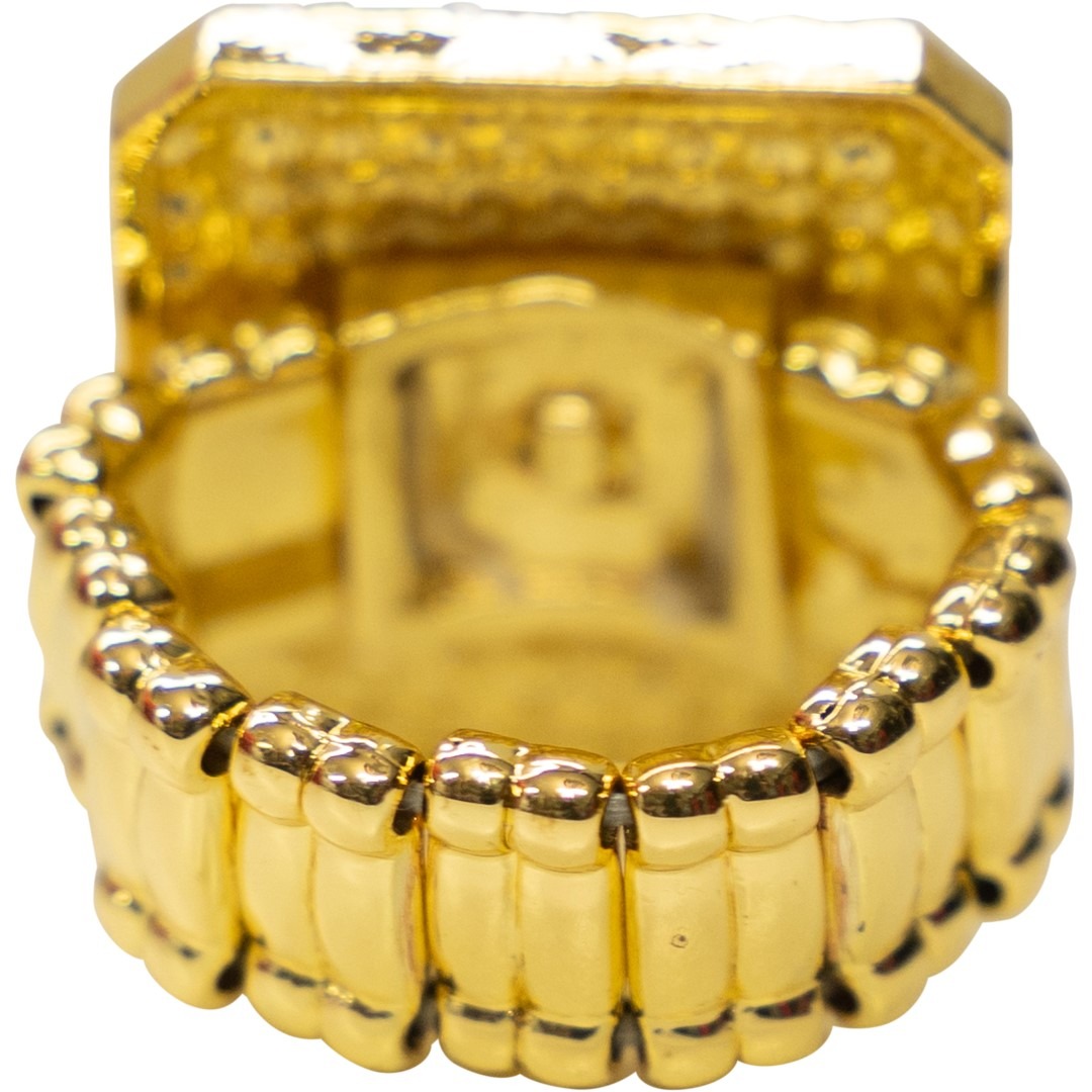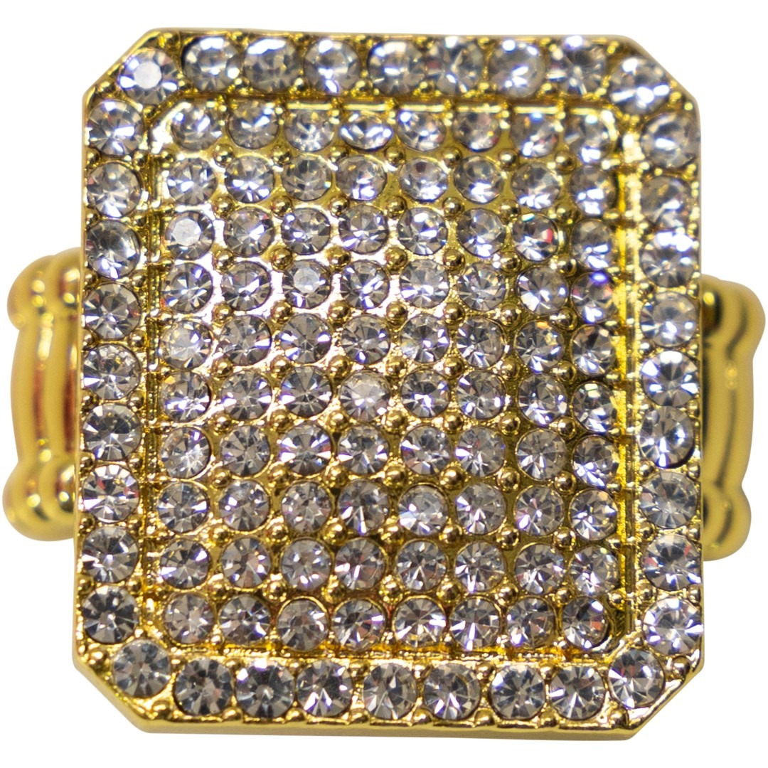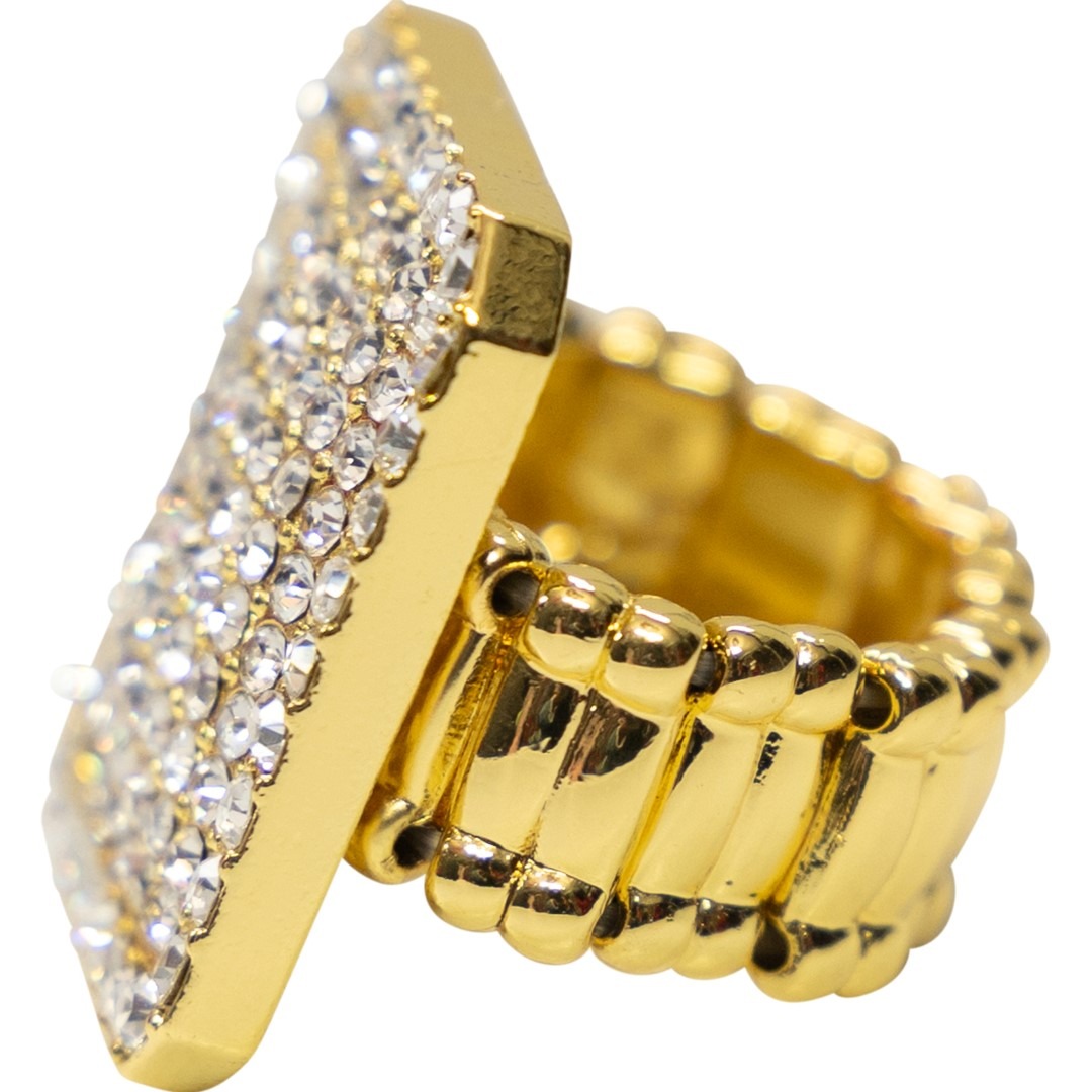 Glinsterende gouden pooier hiphop-ring, met strass stenen (diamantjes) en elastiek.