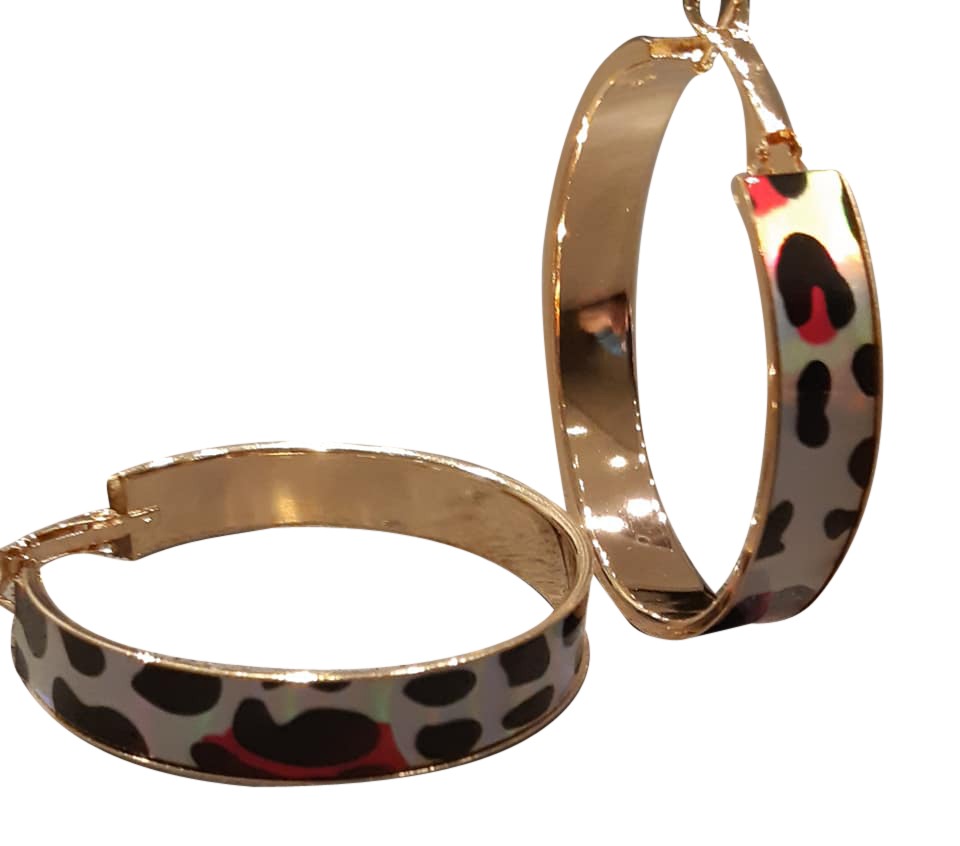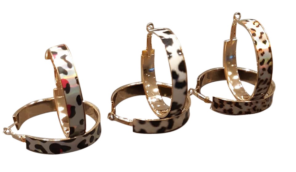 Oorbellen, gevlekt zwart/wit, pink